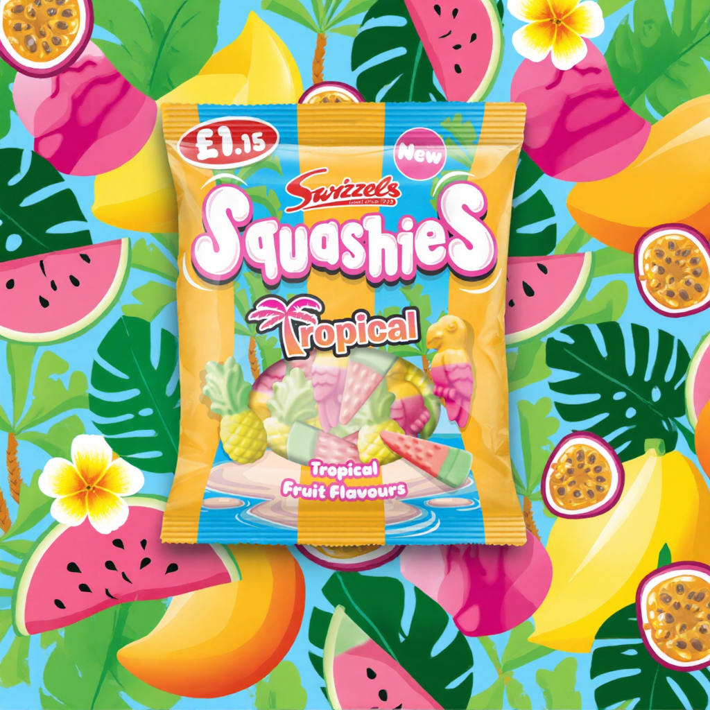 Dive into a burst of tropical paradise with Swizzels Squashies! These chewy gum sweets deliver vibrant fruity flavours that transport your taste buds to sunny shores. Each 100g pack is packed with colourful, soft-textured pieces perfect for satisfying sweet cravings throughout the day. Whether you're after a quick pick-me-up or a fun treat to share, these tropical-inspired gummies offer playful flavour in every bite. A delicious escape in a convenient, pocket-friendly package.